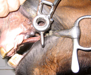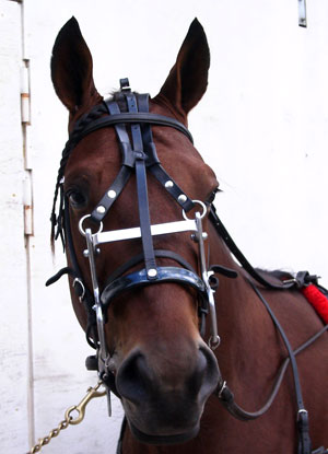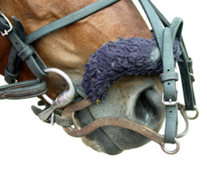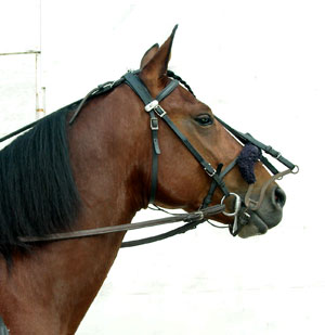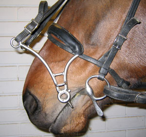 Raymondsekissä on V-kirjaimen muotoinen haara kuonon kummallakin puolella. V-kirjaimen alempi haara on pyöristetty ja ylempi on käännetty ylöspäin. V-kirjaimen kärki on juuri kuolaimen päällä ja edessä ja hihna yhdistää nämä kaksi kärkeä leuan alle. V:n ylähaarat on käännetty hevosen poskia pitkin ja niiden kärjistä kulkee hihna joka yhdistää ne toisiinsa. V:n toiset päät ulottuvat kuonon yläpuolelle ja niihin kiinnitetään obersekin hihnat. Raymondsekin etummaiset haarat eivät saa ulottua turvan yli. |