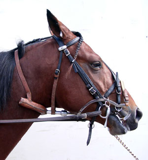 | Hanko estää hevosta painamasta leukaansa kaulaa vasten, niin että sen hengityksen kulku vaikeutuu. |