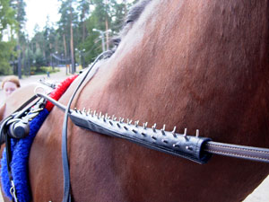 | Kiellettyä on laittaa piikkejä päätankoon, apuaisaan tai ohjiin tehostamaan niiden vaikutusta. |