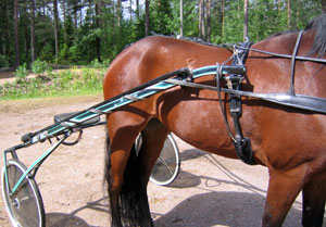 | Pitkä rintaremmi, joka kiinnitetään kietomalla hihnat aisojen ympäri, on kielletty. |